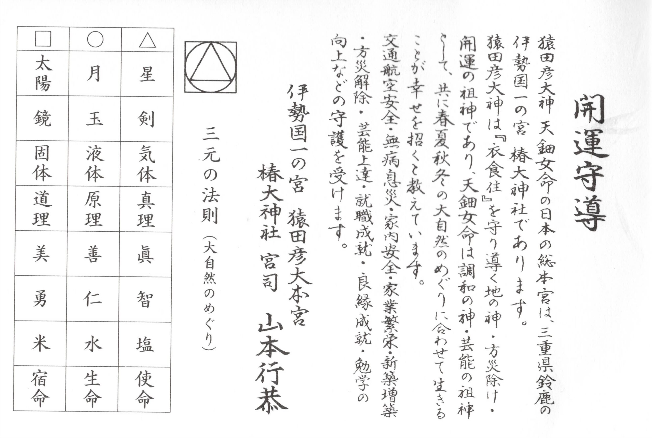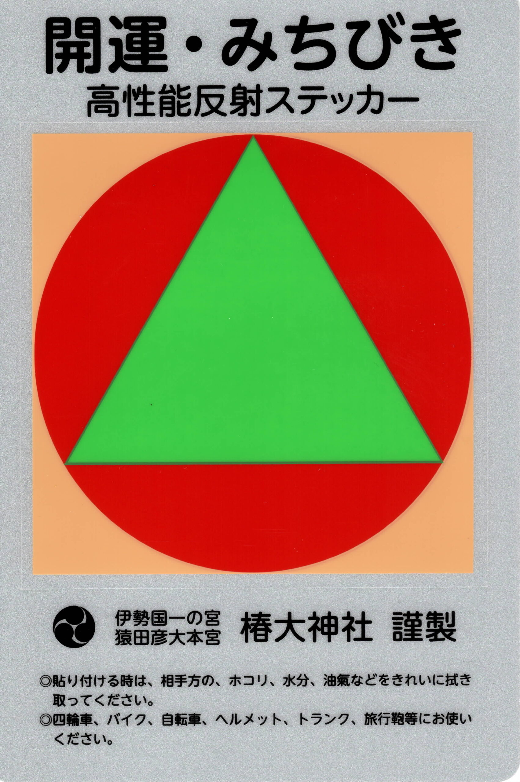 The sticker is designed by Guji Yukiyasu Yamamoto and depicts the SANKAKU, MARU, SHIKAKU (Triangle/Circle/Square) representing Future/Present/Past or Mission/Life/Destiny.